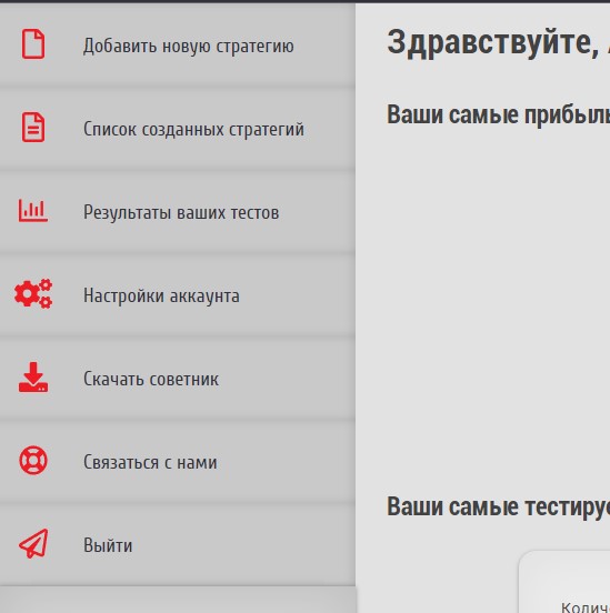 В меню "Скачать советник" по клику скачивается архив с советником: его нужно установить в терминал, после чего с его помощью можно проводить тесты стратегий.
