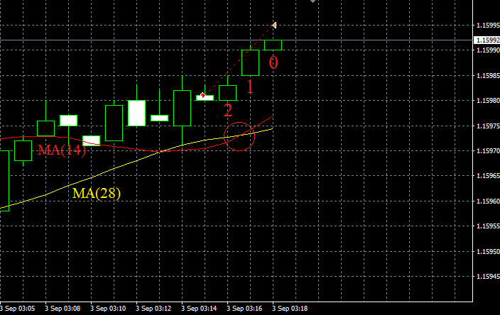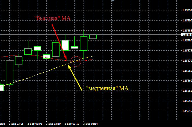 SELL-ордера должны закрыться, когда "быстрая" MA пересечет "медленную" МА снизу вверх.