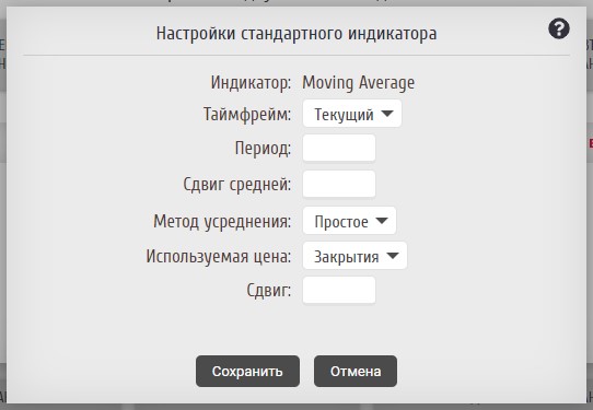 После выбора данного индикатора откроется окно настройки.