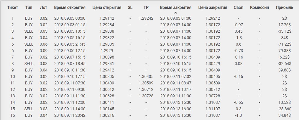 Под графиком находится список ордеров, который можно отсортировать кликом по названию столбца: