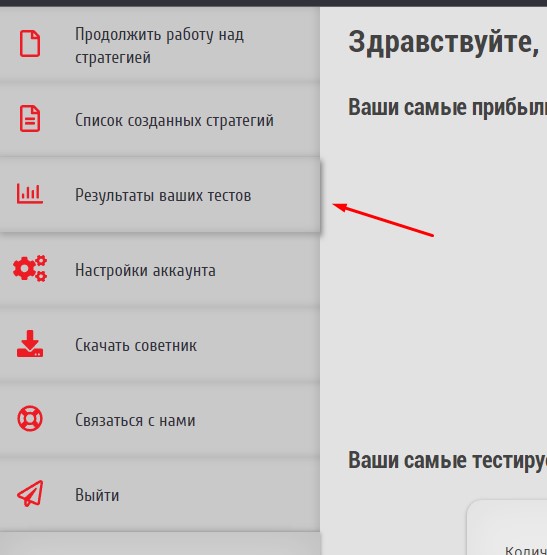 Когда процесс тестирования стратегии будет завершен, перейдите на страницу "Результаты ваших тестов":